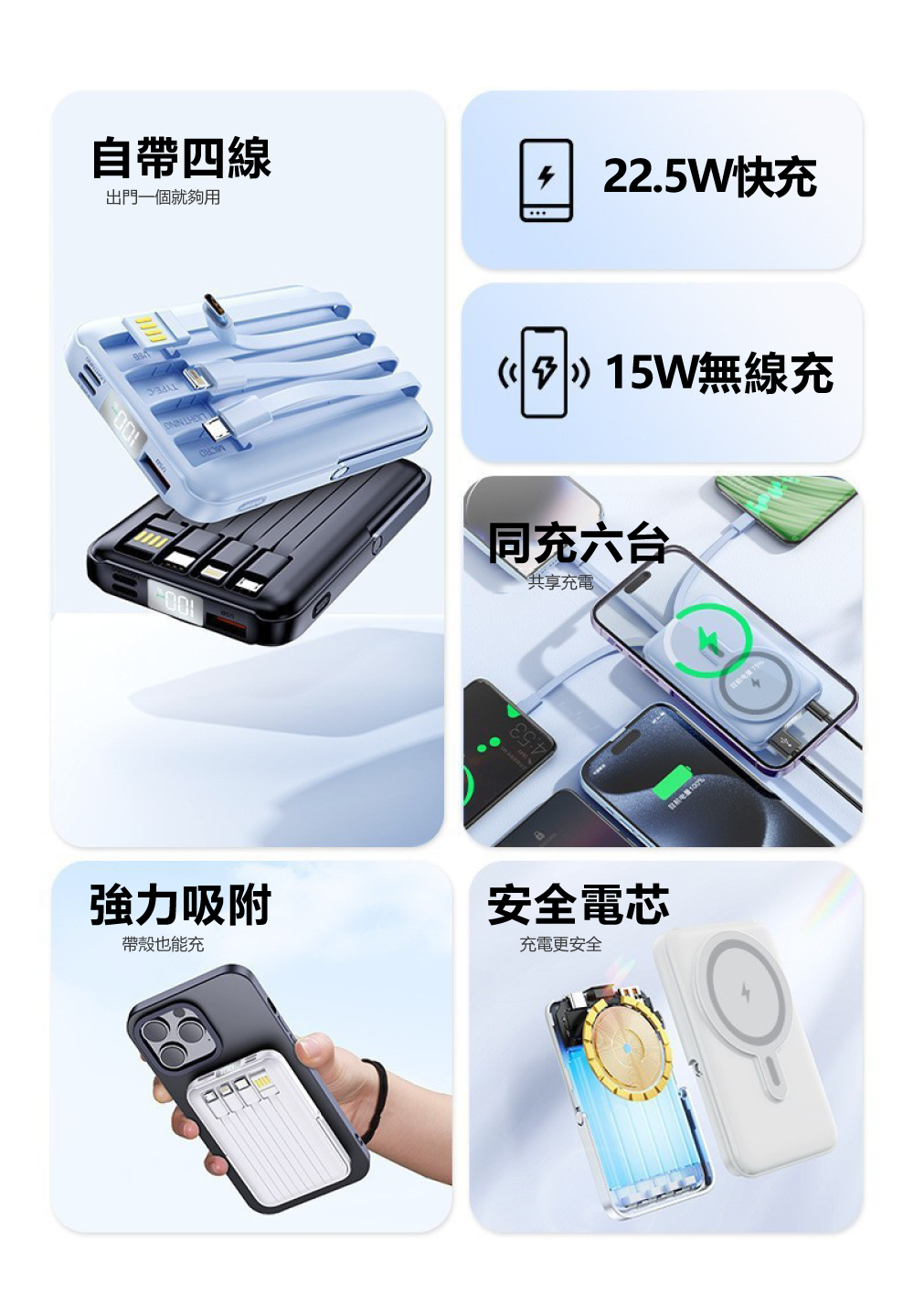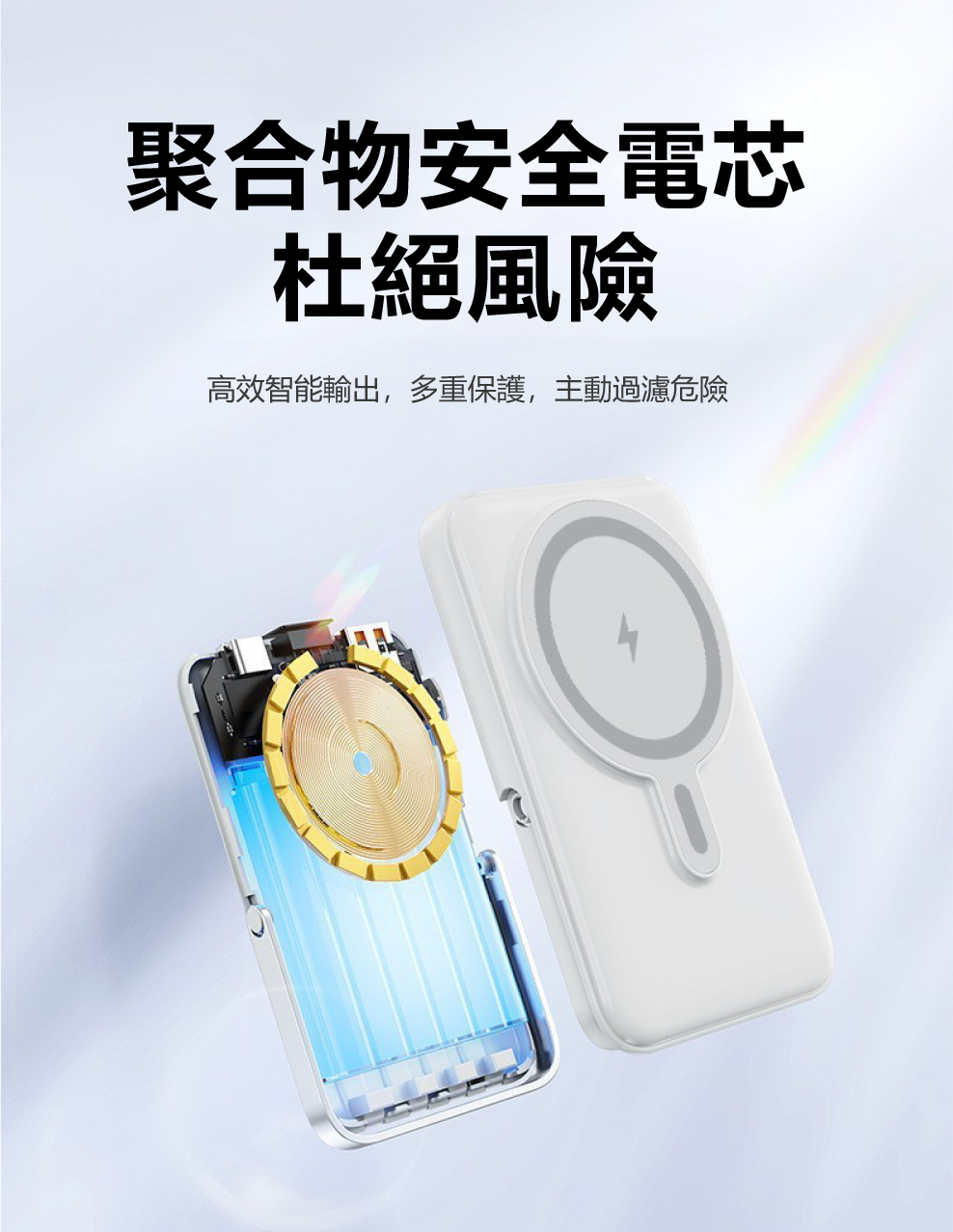 雙線輸出,智能分配:【超強磁吸充電+1C1L雙線設計】一個充電器同時滿足手機和平板的需求。智能動態分配技術,雙設備同時充電也高效,桌面不再被雜亂的充電頭佔據,簡潔又方便。