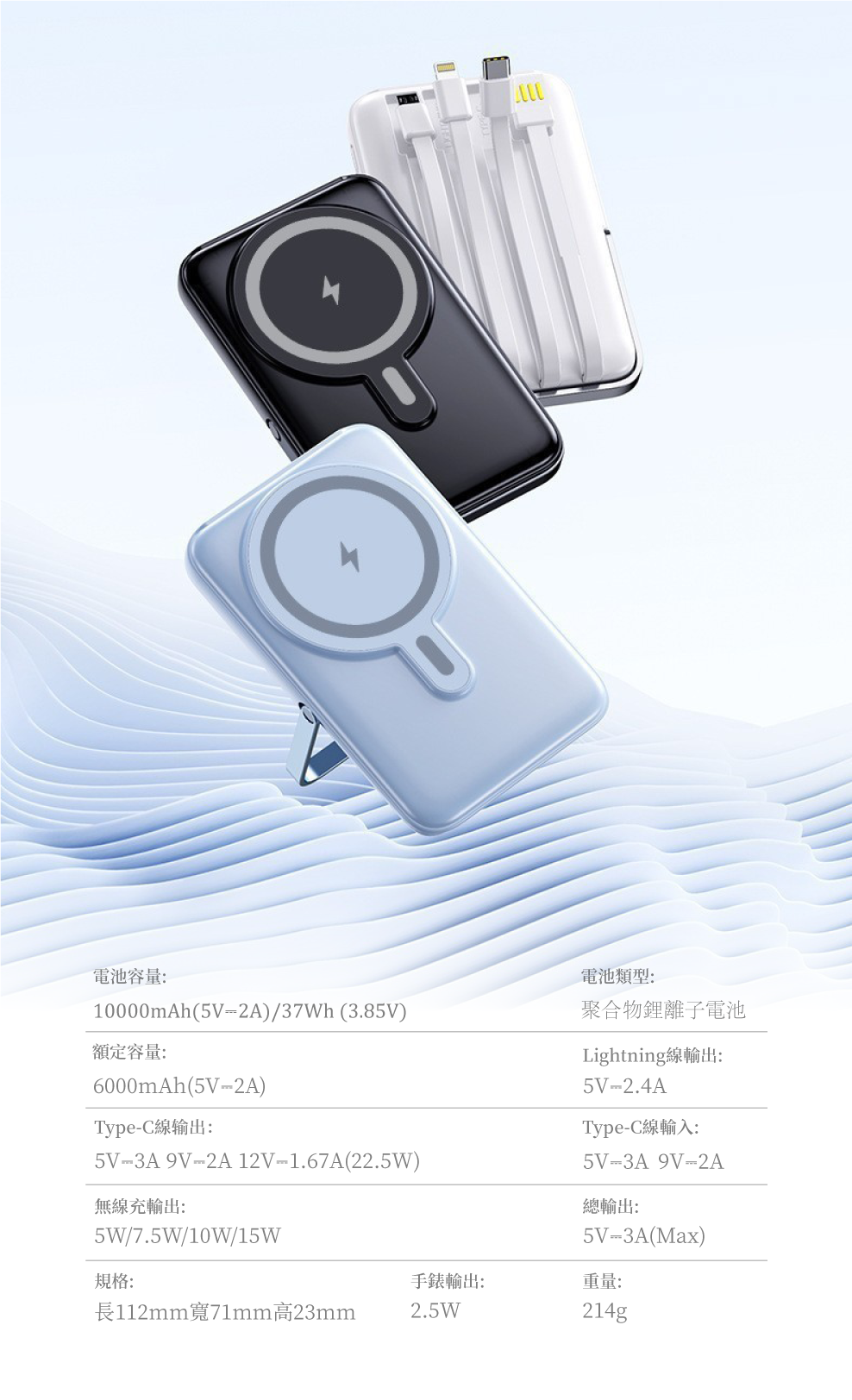 JUEJIA MagGo系列 10000mAh 3頭+無線快充行動電源