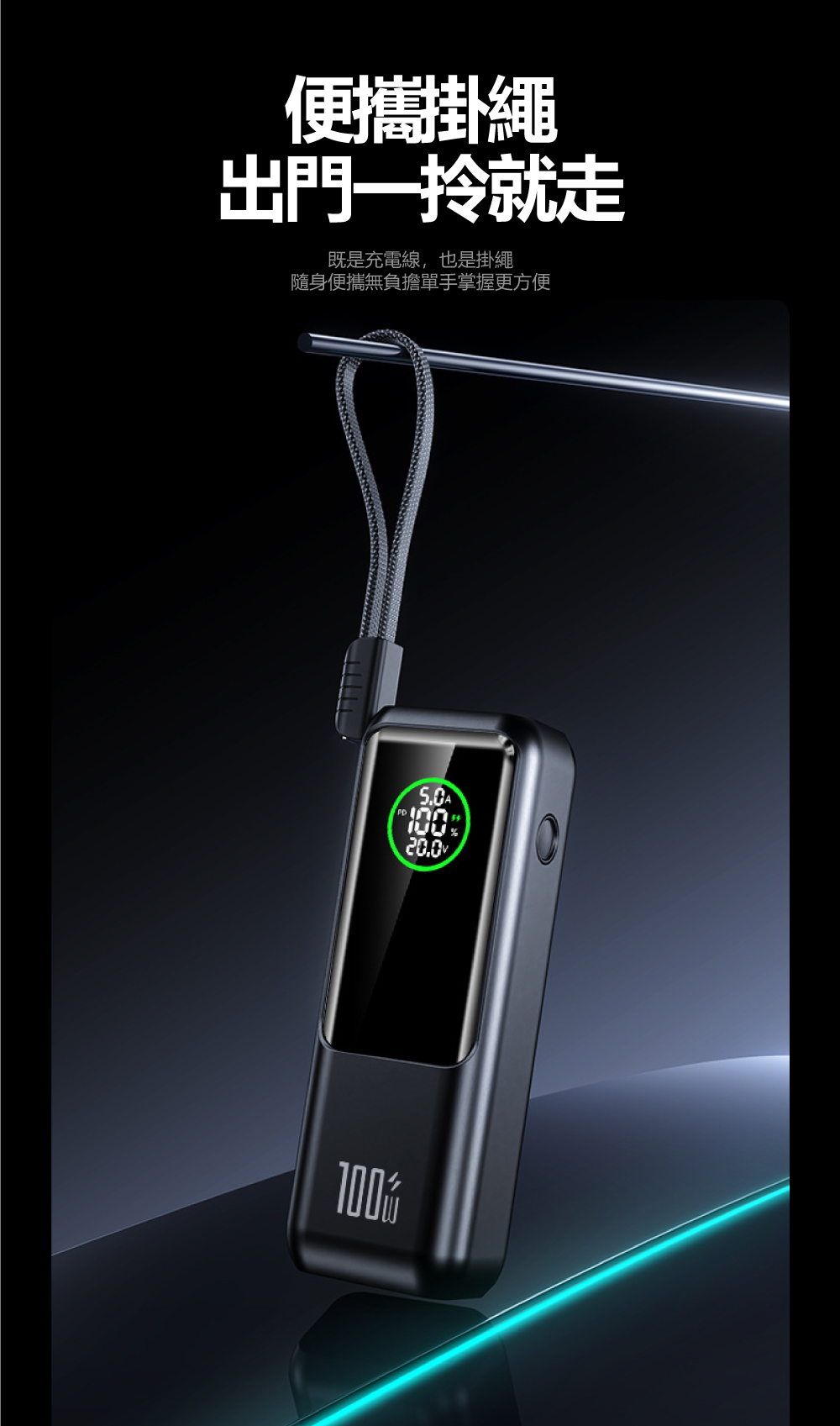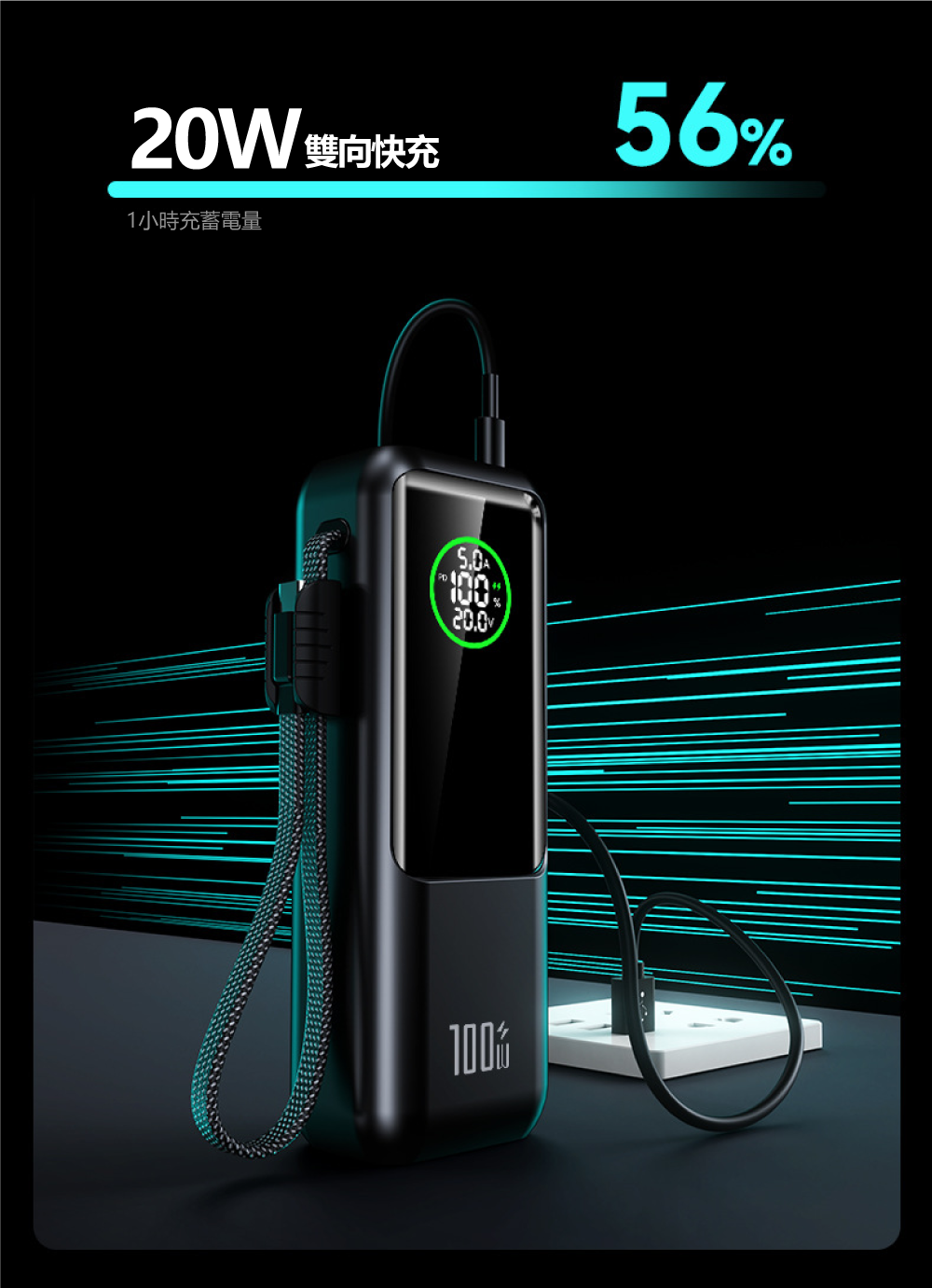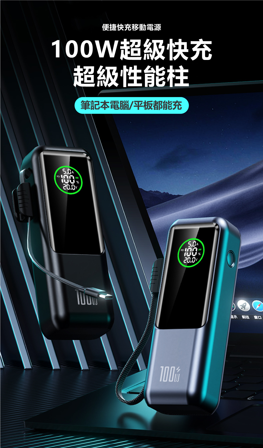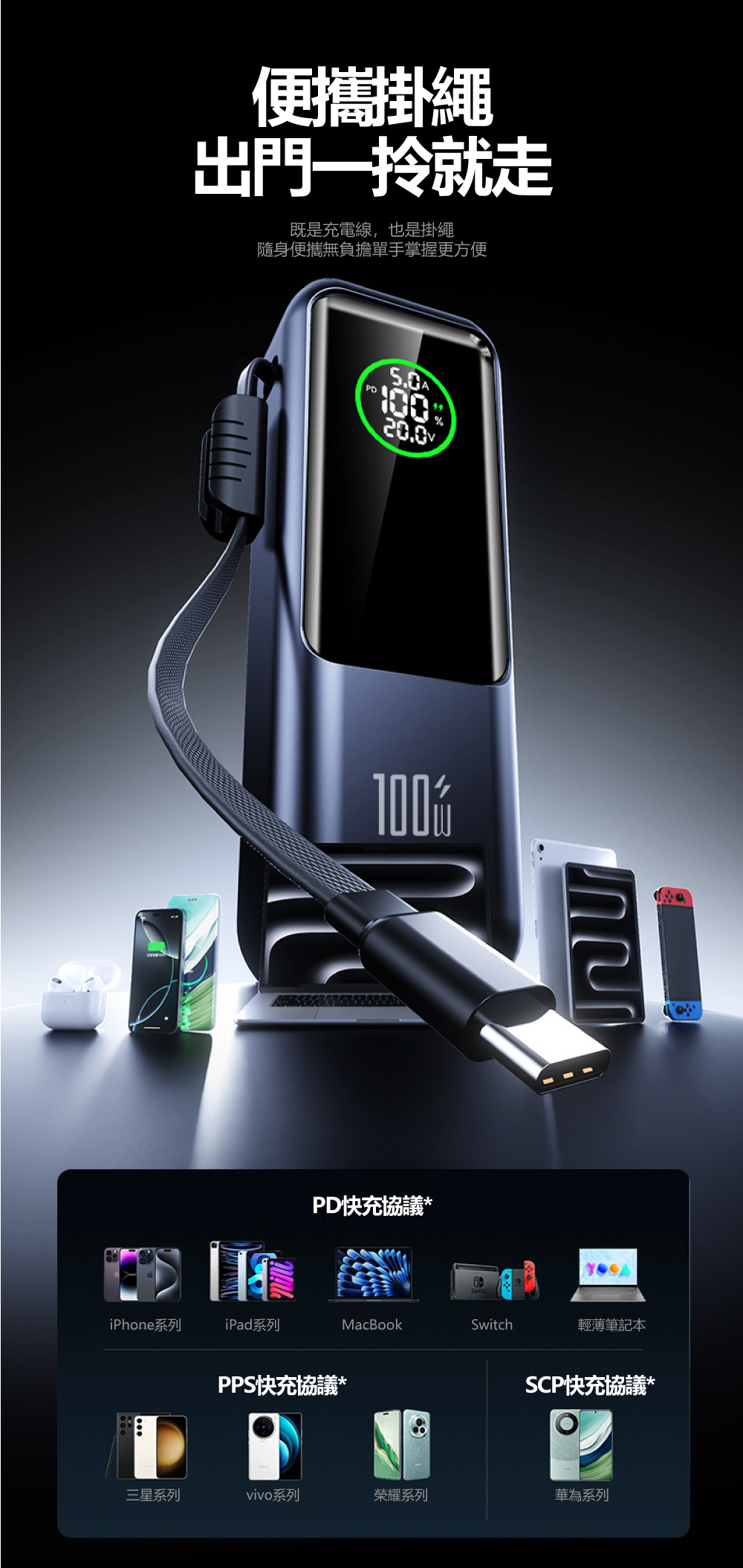 20000mAh大電量+高清數顯屏,電量狀態一目了然▶ 配備20000mAh大容量電芯,能為筆電完整充電至少一次。創新高清數顯屏可精準顯示剩餘電量、充電功率等即時數據,讓電力管理盡在掌握。