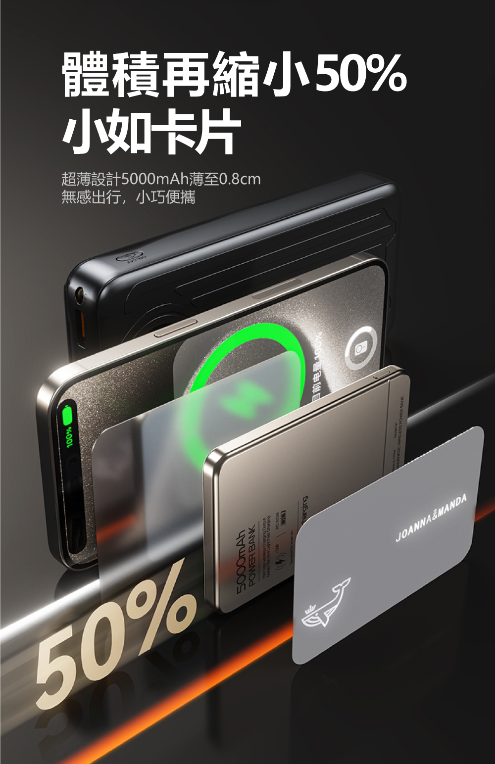 JUEJIA MagGo系列 超輕薄5000mAh無線充行動電源