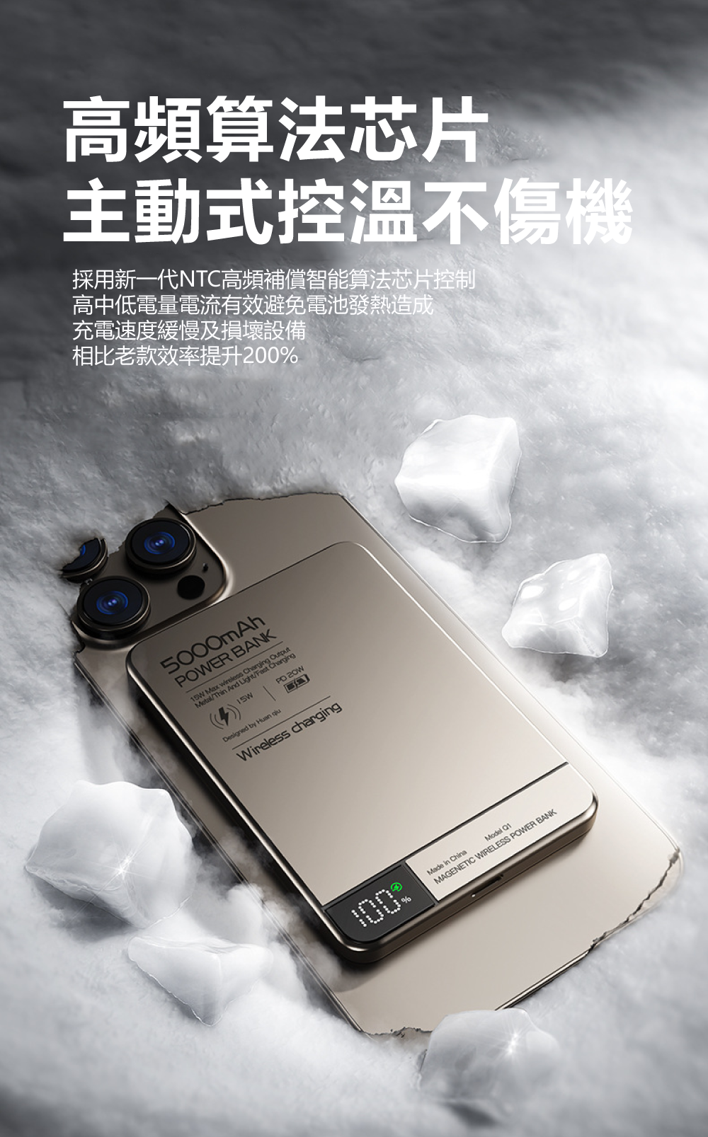 智能溫控,守護電池!NTC算法芯片,每小時萬次監測,降溫效果提升400%搭載新一代NTC高頻算法芯片,能主動監測並調節溫度,降溫效果較前代提升400%。實現每小時高達14,000次的精準溫度監測,有效避免過熱損傷設備電池,確保快充全程安全冷靜。